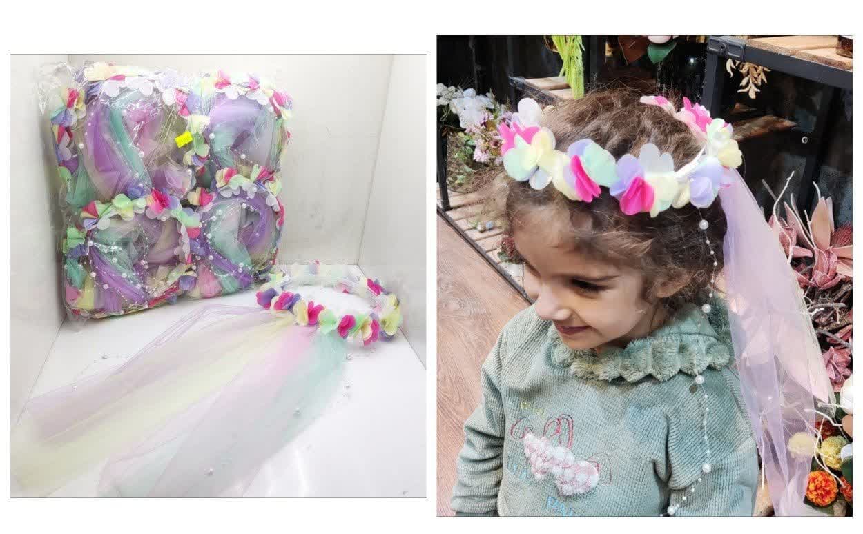 حلقه ی توری گلدار مرواریدی هفت رنگ (تل توری)